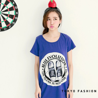 東京著衣 帆布鞋印花寬版T恤-S.M(共四色)-4008155