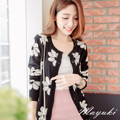 東京著衣-MAYUKI 花朵配色棉質針織外套-S.M(共二色)-4018787