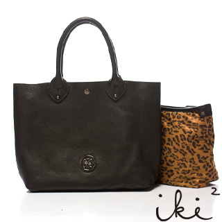【iki2 真皮包】時尚布朗尼濃情蜜意小牛皮托特包(夜幕黑)