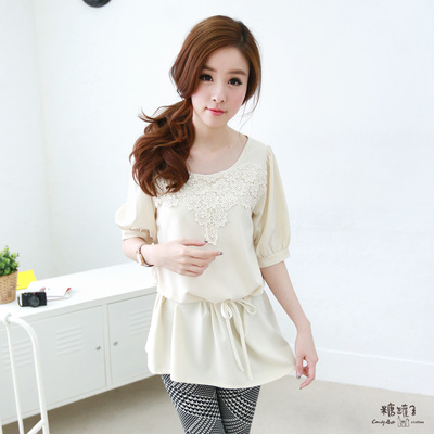糖罐子-布蕾絲珍珠綁繩棉衫(共二色)商品網址: