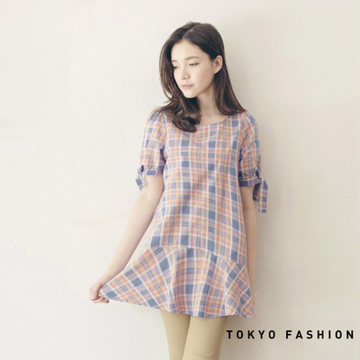 東京著衣 格紋小裙襬長上衣-S.M(共二色)-4008392