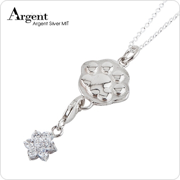 【ARGENT銀飾】隨意扣系列「貓掌(中)+雪晶花漾」純銀項鍊 以中貓掌主體基底,下面可隨意扣上喜歡的小墜
