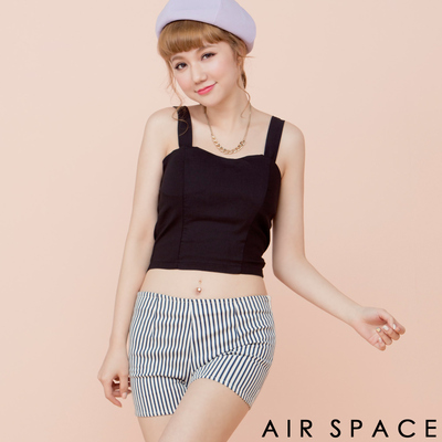 AIR SPACE 馬甲式寬肩帶短版背心上衣(魅力黑)
