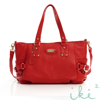 【iki2 真皮包】熱情西紅柿愛戀滋味牛皮雙揹帶抓皺包(熱情紅)