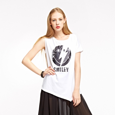 SMILEY笑臉閃電燙箔不規則上衣(共二色)-CACO