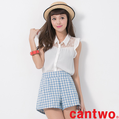cantwo 透膚繡花荷葉袖襯衫(共三色)