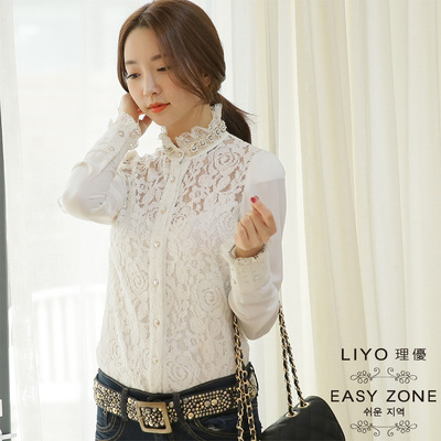 LIYO理優 襯衫 韓系修身蕾絲上衣(共2色)S-XL 4S5013