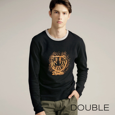 【DOUBLE】MIT磨毛純棉老虎印樣Tee -男款(黑M-XL)