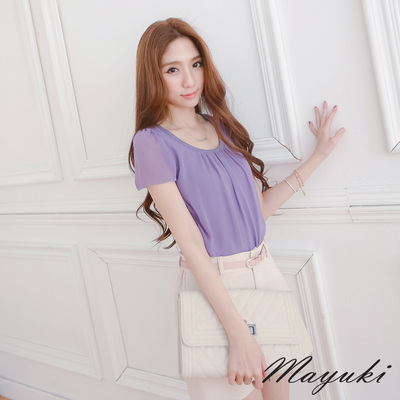 東京著衣-MAYUKI 小透肌雪紡拼接棉上衣-S.M(共四色)-3010927