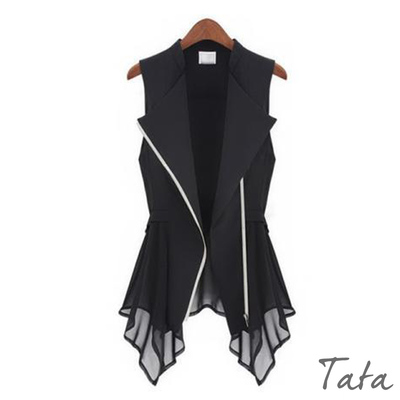 拼接雪紡不規則下擺修身背心 共二色 TATA