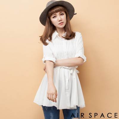 AIR SPACE 蕾絲拼接腰繫帶傘狀衣襬襯衫(純潔白)商品網址: