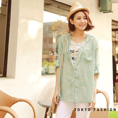 東京著衣 連帽傘狀透膚雪紡襯衫(共五色)