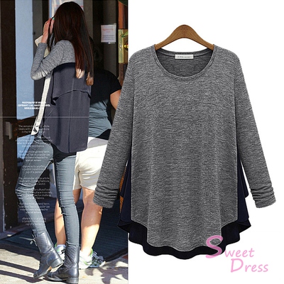 雪紡拼接式圓領長袖上衣(灰)Sweet Dress商品網址: