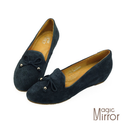 Magic mirror 個性女孩~百搭素面蝴蝶結內增高樂福鞋 ~ 個性藍