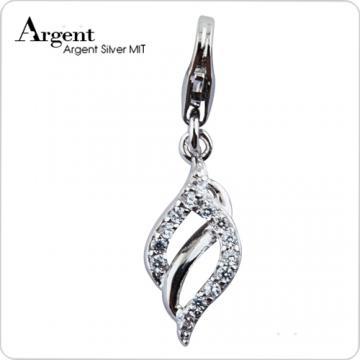 【ARGENT銀飾】隨意扣系列「幸運小葉(白K金)」純銀單墜(活動扣)