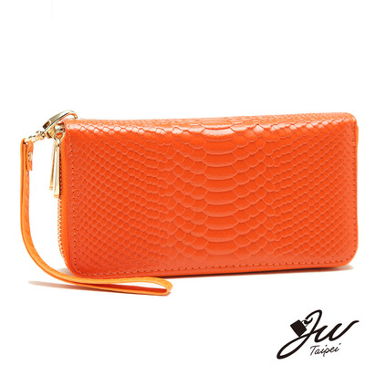【J.W】Wild蟒蛇壓紋雙層拉鍊手拿包(共10色-咖/紅/黃/藍/橘)商品網址: