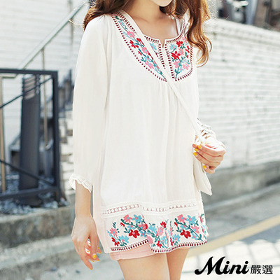 上衣 純棉寬鬆刺繡花朵蕾絲長袖上衣(有內襯)-Mini嚴選之前我就一直想買百貨公司的衣服,但一直找不到藉口為何要花較高的價格買百貨公司的衣服,直到網友Michael介紹我上網買了一件上衣 純棉寬鬆刺繡...