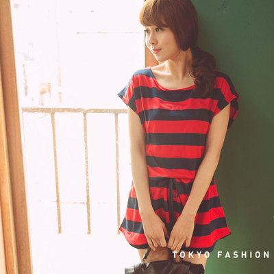 東京著衣 橫條紋抽繩棉質長上衣(共二色)
