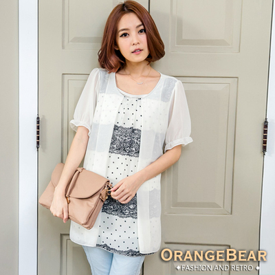 OB嚴選-小圓點蕾絲圖紋長上衣?共二色