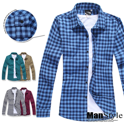 ManStyle潮流嚴選搶眼亮彩雙色深淺格紋流行魅力長袖襯衫男-共五色商品網址: