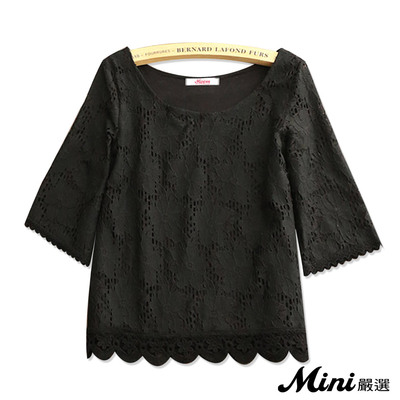 我覺得蕾絲上衣 花朵蕾絲寬鬆短版喇叭袖罩衫 黑色-Mini嚴選不僅穿起來合身舒適,自己感覺也變很有時尚的FU!!(哈哈哈!!!!)