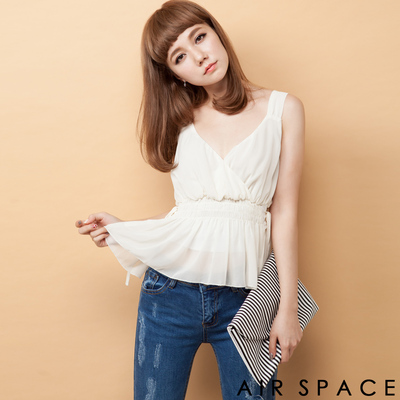 AIR SPACE 細肩低胸縮腰雪紡無袖背心上衣(氣質杏)商品網址: