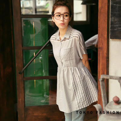 東京著衣 條紋開扣傘襬棉上衣(共一色)