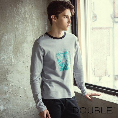【DOUBLE】MIT磨毛純棉老虎印樣Tee -男款(淺灰M-XL)