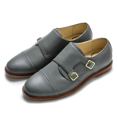 WHILE 雅緻品味 雙扣牛皮孟克鞋–灰