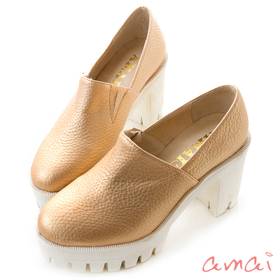 amai荔枝紋鋸齒厚底粗跟鞋.前高後高.香檳金