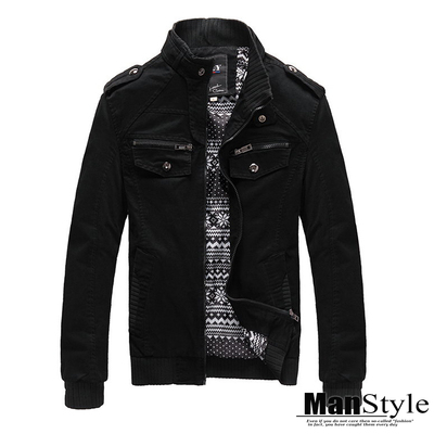 ManStyle潮流嚴選韓多口袋螺紋立領肩章滾邊厚夾克軍裝外套-共三色