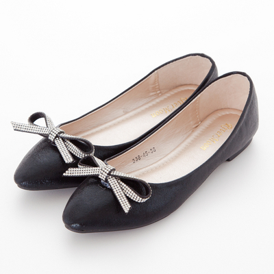 River&Moon中大尺碼舒適柔軟晶鑽蝴蝶結尖頭平底鞋-黑色商品網址:
