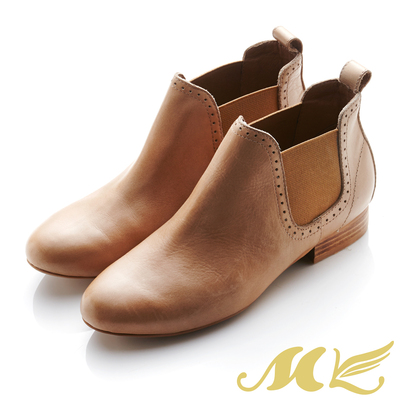 MK - 俐落率性 - 帥氣男孩風伸縮帶牛皮踝靴-卡其商品網址: