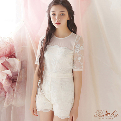 雪紡拼接刺繡蕾絲連身褲-露比午茶商品網址: