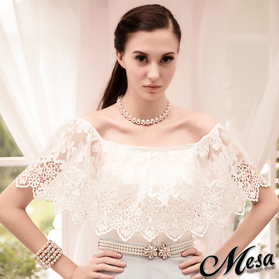 全尺碼OL蕾絲露肩上衣襯衫-Mesa