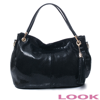 【LOOK】牛絨真皮質感金屬流蘇側背肩提托特包(星夜黑)商品網址: http://www.momoshop.com.tw/goods/GoodsDetail.jsp?i_code=2389944&me...