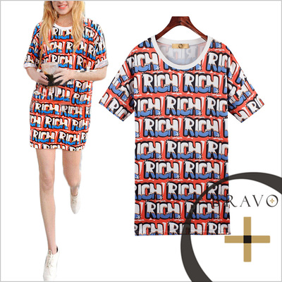 多金RICH彩色字母印花短袖寬鬆洋裝 Bravo
