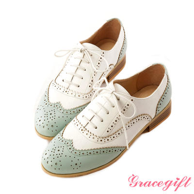 Grace gift遇見新英倫~雕花繫帶復古撞色牛津平底鞋 綠商品網址: https://tw.partner.buy.yahoo.com:443/gd/buy?mcode=MV92TVFFTzVWM...