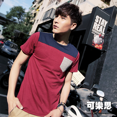 可樂思 圓領短T 拼接色口袋造型圓領短袖T恤-共二色