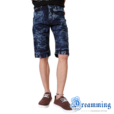 Dreamming 雪花渲染假拉鍊伸縮牛仔五分短褲
