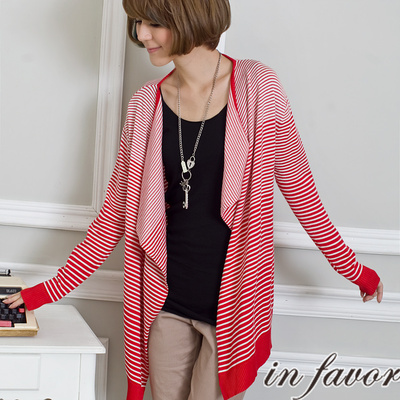 【in favor】設計美感 條紋立體剪裁針織外套-流行紅