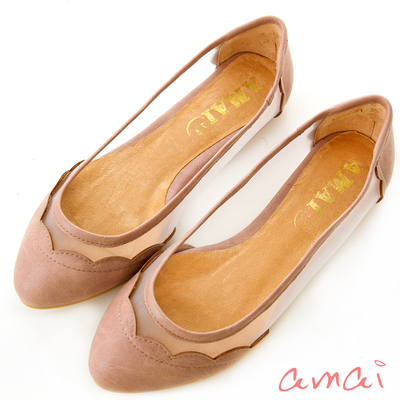 amai甜美花邊娃娃鞋 蕾絲感網紗拼接-裸膚粉