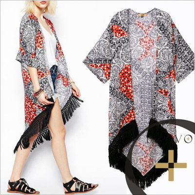 印花流蘇不規則下擺防曬罩衫 Bravo