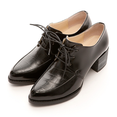 2 Peace明洞摩登感綁帶粗跟牛津鞋-黑