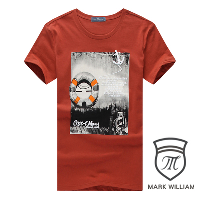 MARK WILLIAM‧救生圈船鉚組合圖案印花棉質圓領短T‧橘色