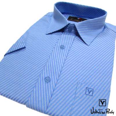 Valentino Rudy范倫鐵諾.路迪短袖襯衫-藍色斜紋