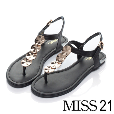 MISS 21 完美心機戀戀T字古金幣涼鞋-黑