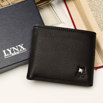 Lynx - 山貓真皮原始經典款7卡2照可拆式左右翻短夾-經典黑