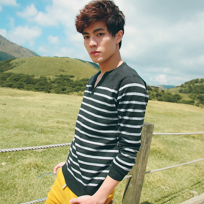 | 商品名稱 亨利領開扣設計條紋針織毛衣