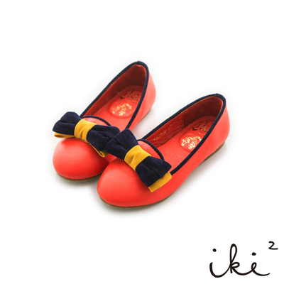 iki2童鞋 絨布蝴蝶結配色樂福鞋-熱情紅